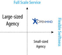 1. We implement a successful strategy in every creative advertising Not only a big scaled campaign, but also all vehicles of marketing communications should be executed under strong strategic planning. Openmind understands the importance of Cohesiveness in advertising strategy. By providing a consistent and unified message throughout all of our creative, we maximize the result of brand imaging.2. We suggest reasonable price and efficient budget processing Except a few large companies, most of companies have a very limited budget on advertising and have to look for ways to maximize the result. Openmind keeps budgets within a reasonable range and insures the integrity of the creative through utilizing our long experience in production and close network with our co-op companies. 3. We provide powerful Man Power and One-Stop Total Service With our years of experience in both LA and Seoul, Openmind provides one-stop total service to our clients from producing creative development to providing Event, Sales Promotion, POP, Online, Print Service. We find a best advertising format and know exactly how to get the best results to meet our client’s needs.